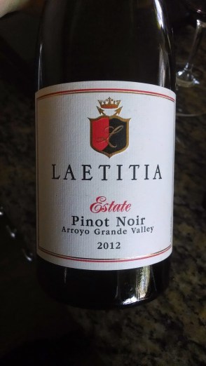 It is funny the differences between cab and pinot in terms of appellation labeling. With cab, a label might bottle several vineyards and then the ESTATE is typically the flagship wine. With Pinot, the ESTATE is usually the bottom wine and vineyard-designates are priced higher–and quality is more pronounced. This is Laetitia’s bottom bottling. I have had it 4 times in the past 4 days–with quite different results. Amazing how ‘place’ and ‘atmosphere’ and maybe even ‘glasses’ make such a profound difference.