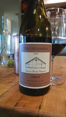 New-to-me SMV find. Solid, well-made, well-priced, balanced wine. A few tartarate crystals under the cork for authenticity. Clear, bright ruby with slightly ambering edges. Nice, mellow nose bursting with cinnamon spice, lush fruit–but subdued–cedar and pipe tobacco. Everything is subdued in these wines. I am not suggesting they are meager or thin, stuff just doesn’t jump out at you. Entry awash of mellow ripe fruit and a touch of briar. Acids start to flow in on their own time and tannin with a touch of polish join up at the end. If the nose wasn’t there, I would mark this wine down. But it’s all there. A nicely made, balanced, easy-to-drink wine which will impress n00bs and snobs alike. Stuff was runnin 120/case last time I was there. I highly recommend checking out Tres Hermanos. 14-2 ♦♦