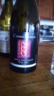 I tried to tell myself when I saw the colour everything was normal. It’s a 2006 Pinot, right? That’s almost 10 years old! It can age a little right? Perfectly normal for it to be dark marsala garnet with brown edges, rife with sediment. When I smelled it I tried to tell myself everything was normal. It’s a bit ripe and maderized, that is all. Would we call that burnt? It is just the ‘darker’ version of Pinot Noir bottlings, right? Sultry and brooding, right? No! This is an over-oaked, over-ripe, smoldering turd which proves YET AGAIN hi-alcohol wines are unbalanced and deserve no ink. Everything in the nose is gone. Everything in the taste is gone. Everything in the finish is gone. Remaining is watery, oxidized, oak. 16-3 my friends. Stick to Syrah, Consilience. Syrah you can kinda jack the life out of with ripeness and you can somewhat ‘get away’ with it on the restaurant list because it forgives a tad more sins than Pinot does. 16-3 pinot. So sad. ◊ for making a shitty wine; Extra point for insulting Pinot.
