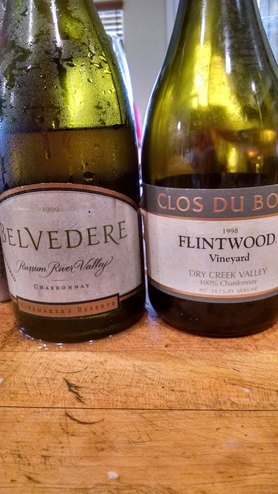 So I’m cleaning out the ‘1990’s Chardonnay’ bin in the cellar the other day–knowing full well these should have been opened 5 years ago at WORST. The Flintwood is a brown, toasted-almond, petrol, oxidized, flat, border-line undrinkable lifeless glass. The Belvedere is a bright almost-chartreuse canary with a nose of flowery fruit, a touch of brown sugar and bright acidity. Completely drinkable. Both 14.1