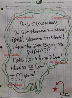 Going down to the cellar for National Cabernet Day–Wait. When did that start?!? Who thought if it?!? We’ve never had Cabernet day!!! This is absolute Social Media BUNK, sheeple!–anyways… going down for a cab tonight I was thinking Napa, definitely, and perhaps boutique, because the large wineries either have a) decided not to play the public-pity-game, b) locked doors and put a strangle-hold on staff and cleaned up in silence, or c) suffered no damage whatsoever. Of course, a lot of this goes back to my Map of Napa. You all have seen my patented Map of Napa, right? Maybe it is time for me to trot it out. Help everyone understand Napa.