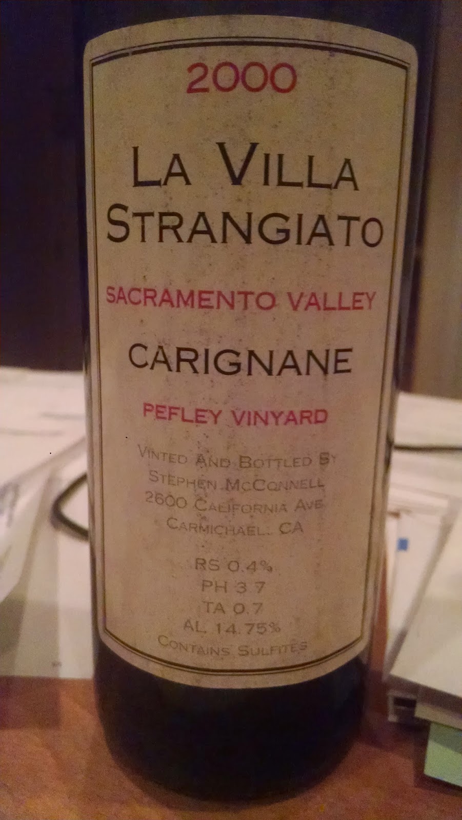 In honour of National Grenache Day, I scoured the cellar for something–knowing I had no Grenache–and, with the exception of a couple GSM’s, this is the closest I could come. Deep garnet with moderate sediment and bricking edges. Shockingly well-preserved and still deeply fruited, was surprised at how little aged-polish shone through the nose. This is the second wine I had made, and picked the fruit from a 75-year-old dry-farmed, head-trained vineyard in Carmichael around the corner from my house. I made it in garbage cans and it was aged in carboys. I had not graduated to barrels yet and probably made at most 10 cases. Rich, heady bouquet of forest-floor and dark cherry fruit. A generous AL shines through and burns the nose a bit. The spice and vanilla nuances are shocking because they must come completely from the fruit–as it was aged in glass and I do not think I had even discovered oak-chips yet. Dense and chewy, and only showing tiny bits of portiness, Again quite shocked it is still viable. A shocking tannin structure completes the middle and carries on long into the finish–but again with a solid side-helping of pesky AL. Down to maybe 4 or 5 of these and probably will drink one per year. For the level of wine-making education I had at the time (a couple library books and a little–what I have learned is horrible HORRIBLE–advice from the local wine-and-beer-making shop) this wine just stuns me as it is rich, vibrant and COMPLETELY enjoyable 14 years in. Considering the marginal testing, sketchy cleanliness, and COMPLETE NUBE processes, I am quite proud. I had absolutely NO CLUE what I was doing. 14-75 and ♦
