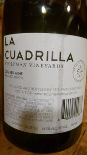 2012 STOLPMAN ‘La Cuadrilla Red Wine’ Ballard Canyon Santa Ynez Valley Santa Barbara Co. 14.5