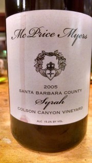 2005 MCPRICE MEYERS Syrah Colson Canyon Santa Maria Valley Santa Barbara 15.2