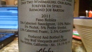 2011 GREY WOLF Meritage Cab/Bec/ME/PV/CF/Carm 75/10/5/5/2.5/2.5 Paso Robles 14.1