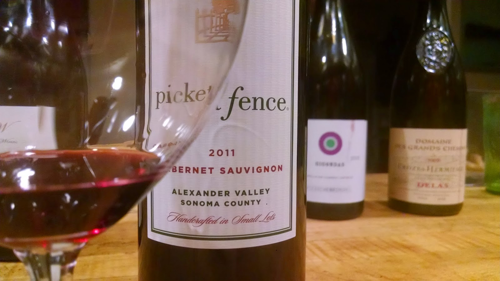 Nice thick ruby with wide purple edges. A bit of Old-World funk blows off fairly rapidly but certain portions remain. A weird way to describe an Alexander Valley cab, but had a Delas Crozes-Hermitage and a Pierre-Henri Morel Gigondas last night and honestly it was the first thing that popped in my mind when I smelled it. Not to the extreme of the pair of Rhones, but a lighter version of those wet-concrete/cardboard lines. After that really just an austere Dr. Pepper black-cherry with notes of sweet cola and SMOOOOOOTH, contrived, warm spice. I have had the Picket Fence RRV Pinot several times and for the price-point, it is pleasant. Nothing earth-shattering, and the cab follows suit. Mouth-filling instantly with bitter peach-pit tannin and unsophisticated full dark fruit seeking out every crevice and going the direction of positively chewy and overwhelming. Mainstream concentrated. Some of the briar and barnyard of classic Alex cab is there… the whole package is just underwhelming. Thin, chalky finish. For the price-point of 20 bucks you can do A LOT worse. This is a great little drinker with some stuffing and interesting bits and pieces but lacks finesse, balance and… well… substance to be anyting more than a 20-dollar cab.