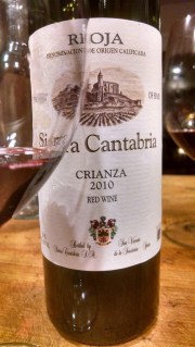 Dark clear ruby with amber edges. Quite floral, wilted lily grassiness with the typical crianza dollop of mild oak. A nice mineral high note provides a nicely balanced bouquet with the obvious polish of bottle-time. The fading fruit-forwardness has the edge taken off of what I suspect was considerably more cloying on release. Overall, it has settled down into a fairly glycerin-ey style but easy on the nose and even gentler on the mouth. Ripe and tarry entrance with fruit fading quickly and being over-taken by somewhat bitter–but mild–tannin. Really a nice little quaffer. Can’t find too many faults with it: for the price you can do far worse. This one hesitates a bit in the gamey-funky category upon initial opening but I have tasted far worse for the price. With a little air, this becomes a fairly full, rich wine which will please New-World-Wonks and contains the acid and meagerness of delicate fruit attractive to Euro-fans. Purchased at 15degreesC. 14-0 and is an easy ‘recommend’ at ♦