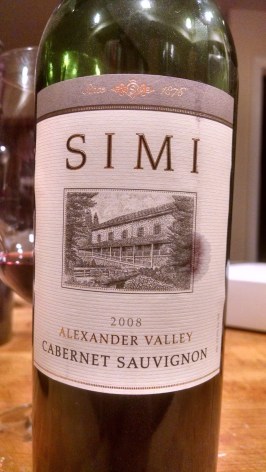 I have a ton of these and when all our plans cancelled tonight and we decided to stay in and make comfort food, I went down looking for something easy, relatively cheap, yummy and fulfilling, but I didn’t want to have to think about it too hard. Wasn’t even planning on blogging about it. A *comfort wine*. Simi always rewards in these situations. Alexander Valley to me is just comforting. I was a little surprised at how dark and dense it was in the glass but the tidal-wave of bouquet doesn’t surprise. This stuff is always heady. It’s more in the expectations, I suppose. You pull a 20$ bottle of cab which is on every supermarket shelf from here to Pensacola and you expect…. well…. something a little more fruit-forward, jammy and easy on the structure. Not with Simi. What a winner–year-in and year-out.