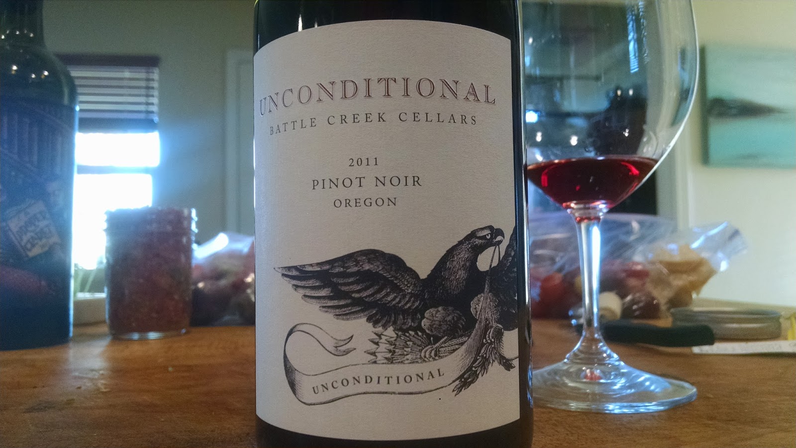 Transparent garnet with salmon edges. This wine almost comes off brown at the wide edges. Light as a feather, and headed into serious rosé about halfway out. Hell, I’ve seen Paso rosés darker than this. Rusty zinc barn-roof and chocolate comes off readily, with wet denim, fountain-ink, and bum. Serious bright raspberry fruit with an under-pinning of mild leather and earth makes for a pleasant package except for the slight rubbing alcohol. I really need to drink a lot more OR. A fair number of them are readily available here, I just pass them over in the continuing exploration of my area. I mean–I live smack-dab in the middle of SMV, SRH, and SLH. When exactly am I supposed to find the time to drink OR? This was a very inexpensive experiment and it is serviceable in every way and even interesting. It really doesn’t beg to have anything complex read into it. In the mouth, whisper-light and lovely. Really. *Lovely*. That is the perfect word for this bottle. Lovely. It looks lovely. It smells lovely. It tastes lovely. Match-head and cherry are the peanut-butter and jelly in the milquetoast acid-and Wonder Bread® tannins. This thing needs to be about 10 degrees cooler. It is something with enough interest you WANT to go all into Pinot-analytical-mode on, but so wispy and delicate it makes Gamay seem sophisticated. A lovely little quaffer with some great pinot nuances going on. 12-5! ♦♦