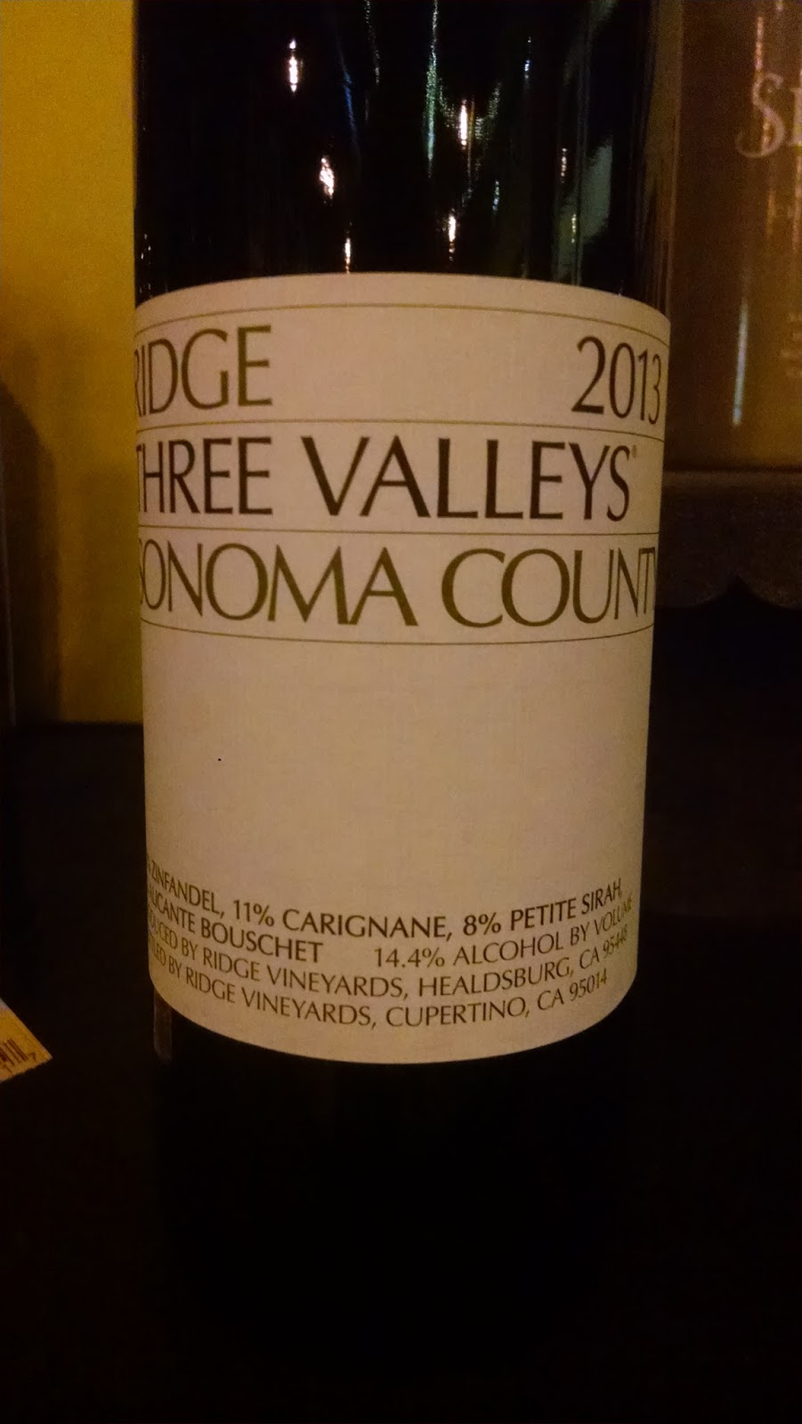 2013 RIDGE Red Blend “Three Valleys” Zin/Carignane/PS Sonoma County 14.4