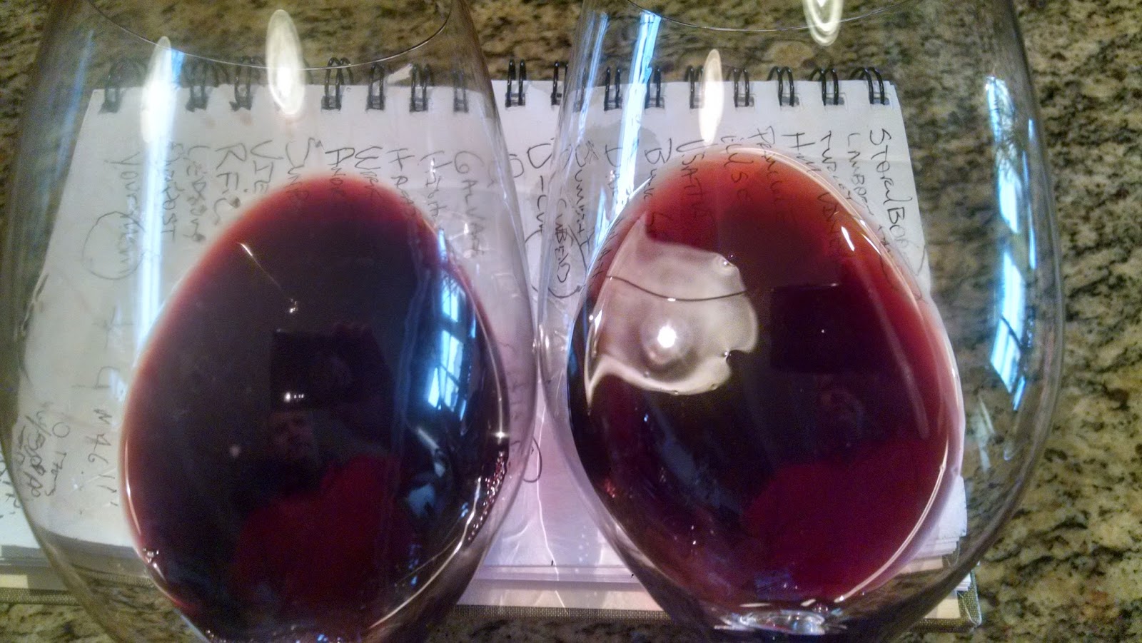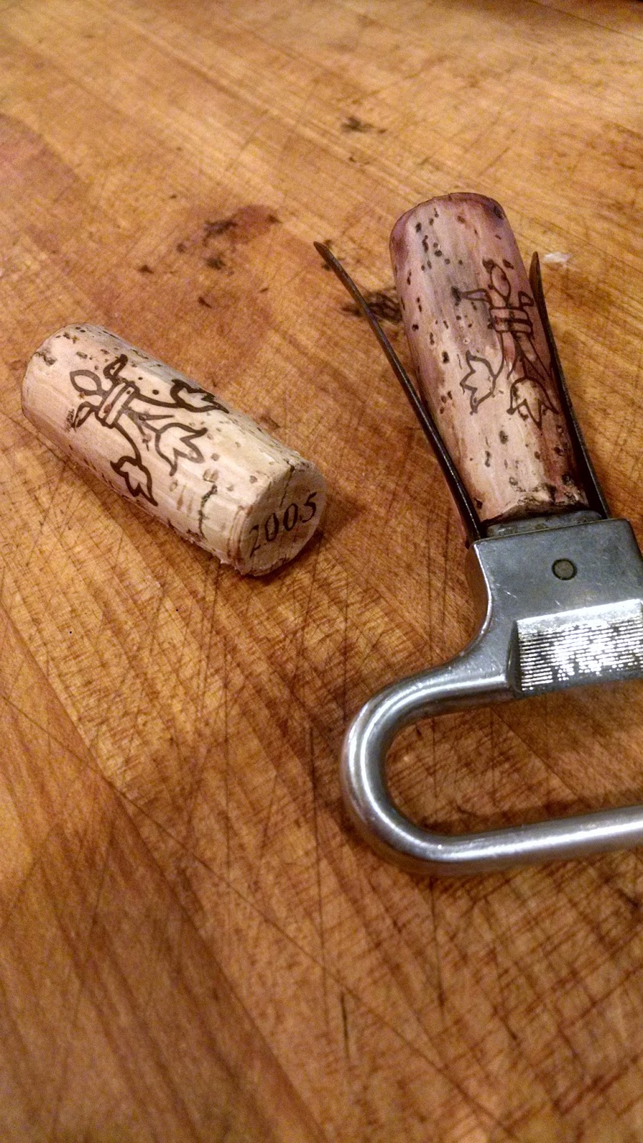 2004 Impenetrable pitch-black ruby all the way out to tiny thin maroon edges. Completely staining. Considerable sed. Big ripe tarry fruit distillate, alcohol and intense briar hit the nose in that order. A weedy strain of wood so completely integrated into the bouquet, it is hard to tell where the fruit leaves off and the minerality takes over. Like smelling a black moonless night after someone has ripped a field of brush… and it’s raining. Early: a bit of cellar-funk, overpowered by ripe fruit. Late: an overt petrichor lapping at a leathery beach. A chalky brightness you HOPE translates over to the mouth penetrates the late-bouquet. These came by way of the winemaker of a defunct winery. Never got labelled. 05 had provenance issues the past few years and it shows. If the 04 had comparable storage issues the past decade, it has the mettle to shrug them off. In the mouth, a lot sweeter than I expected. A full port-like intensely-concentrated whallop of dark fruit hits early and maintains its viscosity across the palate. Alcohol rears up early crescendos off into the finish. This is a BIG. RIPE. BRUISER. Porty with a certain level of oxidation, rich overly-ripe cherry preserves gyrate against a sandpaper canvas of chewy tannin, shockingly bright acidity, and alcoholic heat. The briar is left in the nose: The mouth-feel is all jam. This thing is SO HUGE, distilled, sweet and ripe. But I can’t bring myself to call it pancake syrup. It has far more going on. The LEGS are red! You absolutely have to CHEW this wine. This is not my preferred style of wine. But oh man is it yummy. This thing HAS to be 15-2. ♦♦