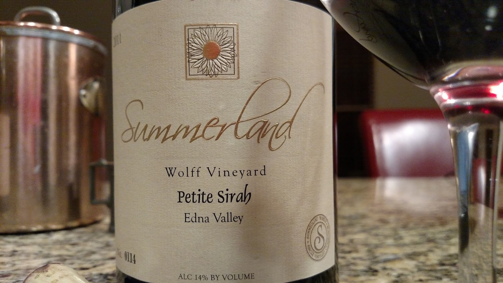 Clear dark ruby with tiny clear edges. Tiny funk, opens up to raw artichoke, a black pepper, and a wet, angle-grinder-on-rusty-steel minerality. Dense fruit apparent, a little burnt rubber, and alcohol. Was excited to try this, as I have *possibly* one bottle left somewhere in the cellar of the original Wolff PS produced at 2nd or maybe 3rd leaf by Wolff. Have enjoyed a number of them over the years. This is a really boring wine. There’s just nothing going on. Not terribly flawed, just dumb in the mouth. As regular reader will note, I am a HUGE fan of Summerland Pinots, Etienne Terlinden and Cordon Syrahs. But this is a bland, safe wine not wowwing me at all. Fruit is shy, but it definitely is not watery–full of body, acid and ultimately, moderate tannin. It doesn’t insult you, but the mouth-feel leaves something to be desired. The thin fruit disappears too quickly into the hot peppery finish, just very safe, easy-drinking wine with a finish which will win over those who are not focused on balance. 14-0 ♦