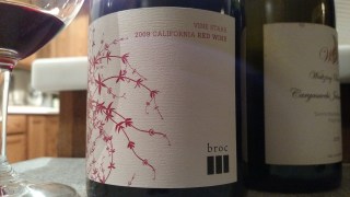 Medium garnet with wide amber edges. Big floral, maple bar, ever-so-slightly oxidized fattiness layered on lush too-sweet fruit. Grainy pepper over mild but lush oak. Another Broc offering, and you can somewhat start to feel the approach early on in the palate. This stuff is clean and focused, not as briary and tannic as I like in a zin–this is an easy-drinking quaffer–but with commendable density. In the mouth, mellow and easy, curling pruney in a couple of watery corners. A decent spice pops up before heading off into a sweet sunset completely devoid of tannin. 13-5 ♦
