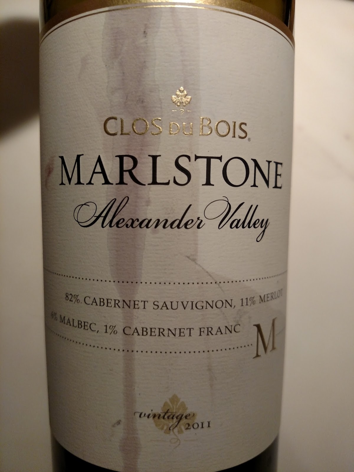 2011 CLOS DU BOIS Marlstone Alexander Valley Cab/ME/bec/CF 82/11/6/1 14-5