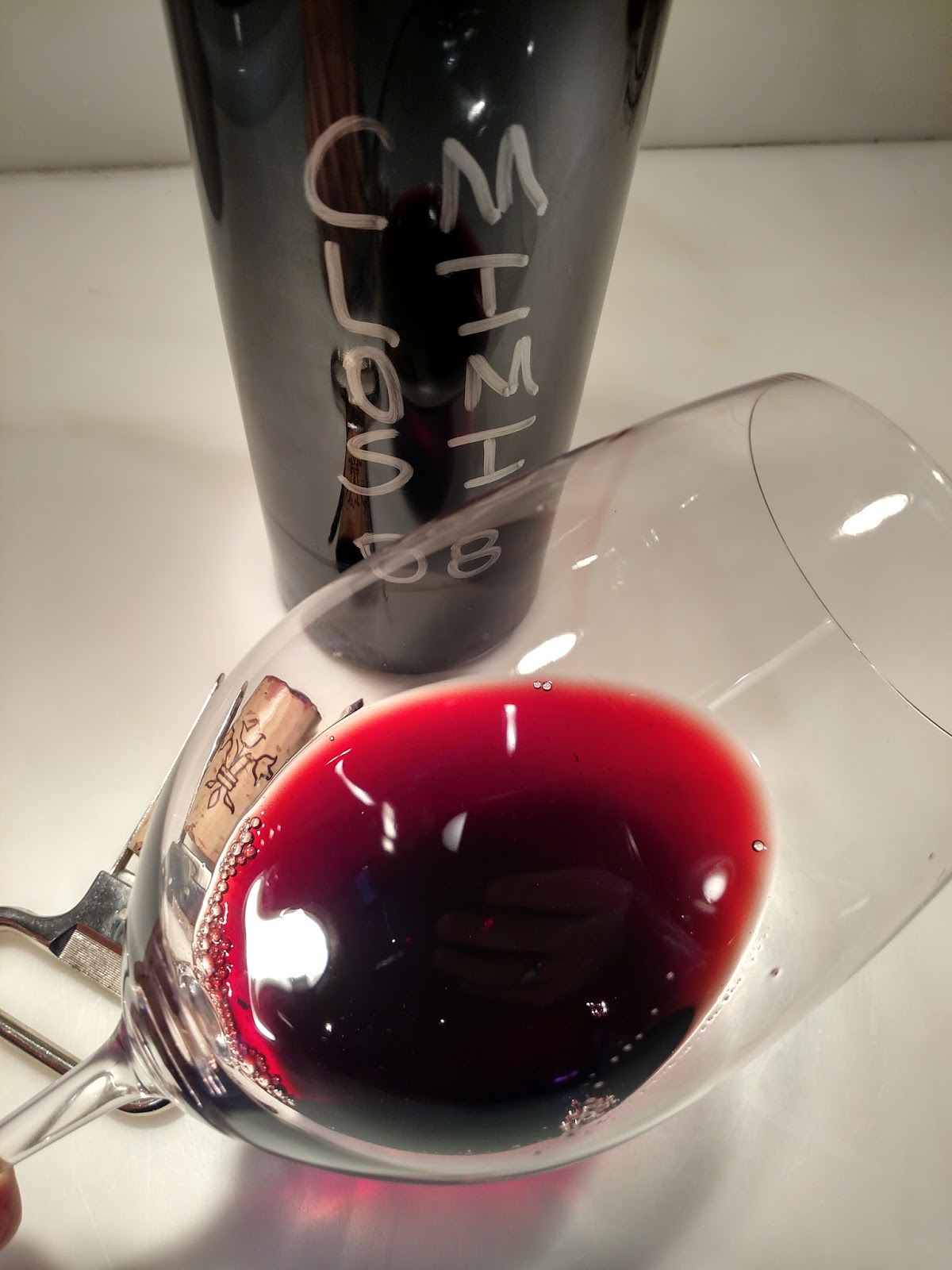 Dark garnet all the way through. Heavy sed. Voluptuous creamy nose crammed with oak and some of the most disgustingly ripe fruit you will ever smell. It is so fully acclimated to concentration it has no nuance, just gobs of sweet sweet layers of icing and fudge and ripe dark cherry tinged in prune and oxidizing. It IS oxidizing. There is no argument in my mind. I have taken this wine to 20 events with 40 winesnobs in the past couple years and it is running about 60/40 this wine is oxidizing and headed South. It is not a fig-newton of my imagination. At first I was all, “This wine is going.” and people be like Nah bro it’s just ripe fuggetaboutit and I’m all “This wine is oxidized.” and then people started being like, Dude, this thing’s going. Drink up! Google Clos Mimi if you’re bored. Darling-child of Central Coast Rhone-style stuff in the early 2000’s. Rather expensive for the time, winemaker had a great resume, fruit usually had an awesome pedigree, allocated and elusive–was even on Wine Library. Started playing with cab in 2007 and ended up making two before financial and whatever woes happened. A 2007 McGinley which was highly rated and sold out quickly and a 2008 which was never released or labeled. That’s where this wine comes in. (Yes, there was a small lot of the 2008 available from Duke of Bourbon last year with after-market labels and it was part of the group I received sans-label direct from wine-maker storage.) Anyways… for a myriad of reasons, the winery is gone and the winemaker has moved on and–at least in MY cellar–there remains only a few Bunny-Slope Syrahs and this Cab. I am a huge fan of the McGinley/Westerly vineyard and I am a huge fan of this wine–or at least I WAS. Lately it has been showing signs of hi-AL/extraction/concentration woe. Those of you sitting on huge cellars of Herman Story, Sans-Liege etc. etc. etc. prob wanna just stop reading now. This thing is big fat rich ripe round obese and oxidized. End of conversation. This is not to say I am not enjoying drinking it, it’s just…. well, know has you are getting into. From conversations with the winemaker, something like a 45-day mac but only 14-2 or so. There IS an incredible acid and bright tannins, but they are shallow, surrounded by cheap citric-acid situations and not deep and well-meaning. The whole fruit-situation thins out considerably in the middle and leaves you awash in bitter tannin supported only by faded fruit and oak residuals. We’ve all had “Syrah-like Pinot”, well, here is Syrah-like Cab. And it’s not a good mix. At least not for the long-run. This thing is a fat slut. Not that there’s anything wrong with that.