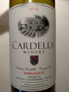 2012 CARDELLA WINERY Sangiovese Vineyard 22 Mendota San Joaquin Valley California 14.0
