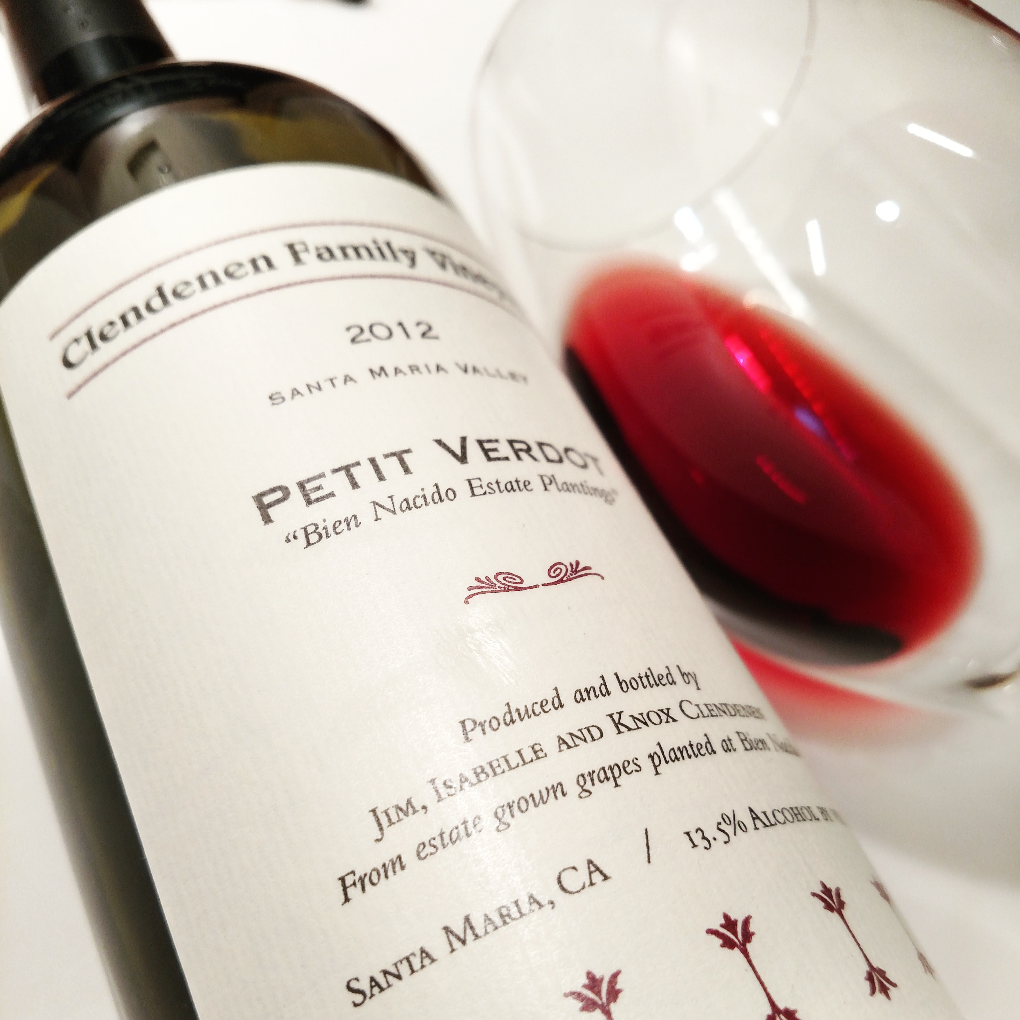 2012 CLENDENON FAMILY VINEYARDS Petit Verdot Bien Nacido Santa Maria Valley Santa Barbara Co. 13.5