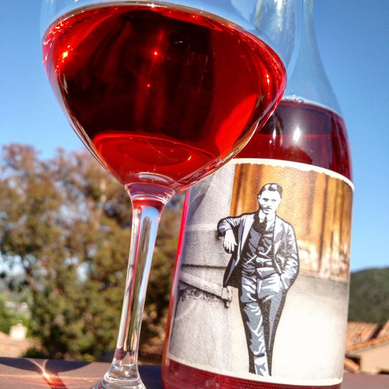 Rosy grip–appearance and nose–give immediate notice this will not be a wall-flower rosé. Heady, creamy Meyer lemon and chrysanthemum give an unctuous, buttery texture which–even though it is nearly dark enough to pass as a light red–drinks better well below 50°F. Sweaty alcohol rolls casually off, melding perfectly with the grenache naturalism and cellar floor bohemian. Hula-skirt floral translates straight into the mouth, reubenesque and idealized, not the skinniest chick on the block, delightfully soft to touch, every curve accentuating strength in femininity. Old wallpaper, brick and wood floors juxtapose steel girders and glass reflections in a wine aiming to represent the best of both worlds. A 3-barrel rarity from Paso Robles, but try to find.