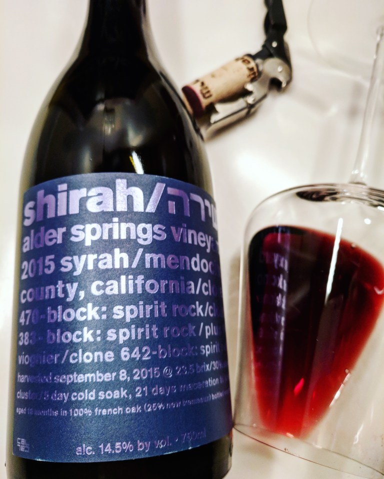 2015 SHIRAH WINE CO. Syrah/Viognier 94/6 Alder Springs Mendocino County 14.5