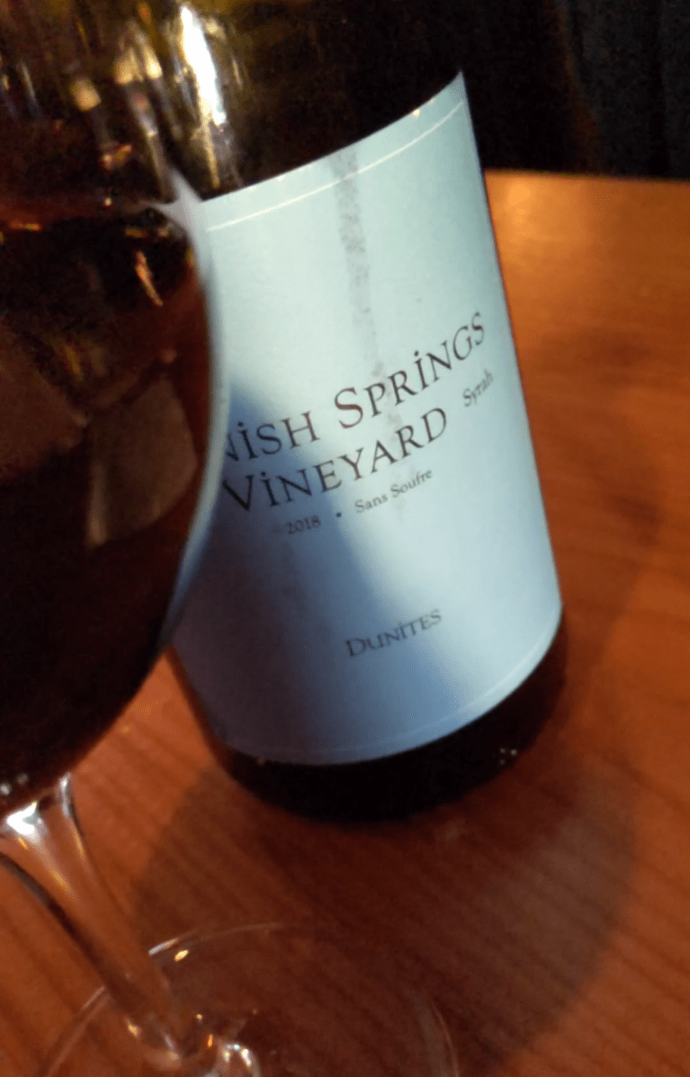 Dunites knockin another one outa the park with this sans soufre Syrah from, well… you can read. Sharp briar rasp on a rainy steel platform. Fruit so bright and fresh, sharp and ridiculously vibrant. This is a wine for people who like acid and tannin and who like their fruit edgy and green bit still voluminous. Sure, there’s a firm ripeness to it–but only in the spirit it colors the background with. Gorgeous and perfumed, conflictingly ripe and exhaustingly structured, I would blind this so hard in a young Cornas tasting or equally young (and expensive) côtie-rôtie gathering. If you can find this, I highly recommend it. Not sure the longevity of it, but it is nothing short of stunning right meow.