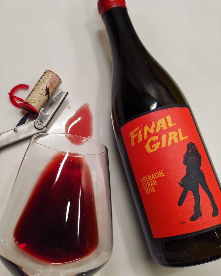 Oh yeah… go ahead and laugh at the label. I did. And you know me–I don’t even care about labels. But this one… hoo boy. Hard to ignore this one. It may or may not have helped that the dude pouring had a chainsaw on his t-shirt. Then I tasted them. Turns out half the team writes horror screenplays and the other half is associate winemaker at Cambria. Explains both the chainsaw and the great wine.
