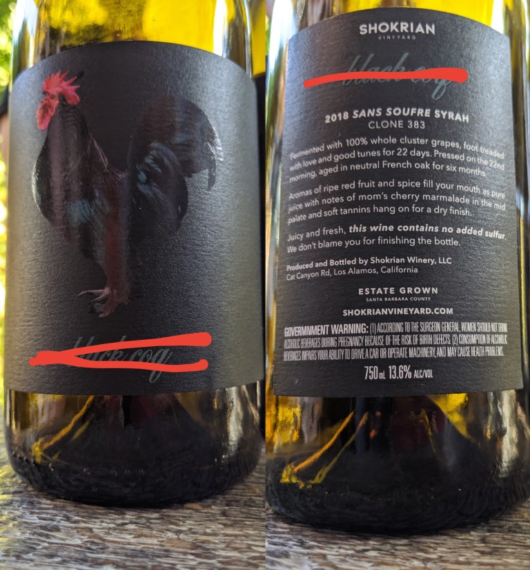 First up absolute WINE OF THE DAY was the 2018 Black Coq sans soufre Syrah from Shokrian Vineyard. A most impressive wine from their new winemaker, followed closely by his 2015 *regular* SY. I don’t know how much of this was made, but if you have a thing for the edgiest Sonoma Coast or Cambrian syrahs, GET SOME OF THIS.