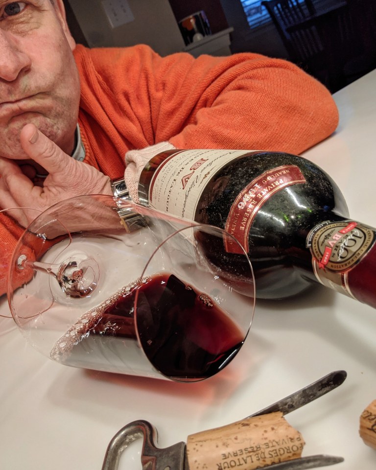 This wine is a weird middle ground of still-ridiculous fruit and everything headed South in a way that is nearly incomprehensible to wrap oneself around. We’re used to tired wines showing overt areas of this and that, but this is a different bird. I’m not saying it is not ready to drink or even fading–it’s different than that.