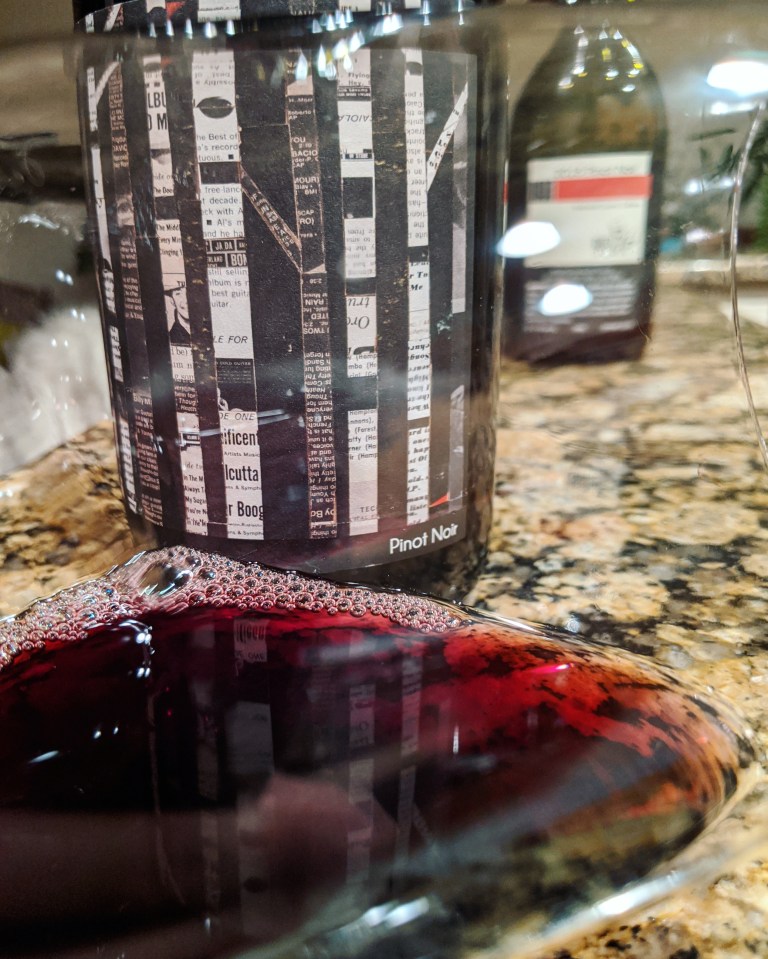 Very dark ruby with more of a purple hue than the expected garnet of Pinot. Muddy and weedy in the nose–but not a sharp briar; newsprint and squished bug and kefir with a flat note feeling like oxidation. Rather closed-in on the nose, the oxidation isn’t showing up as prune, rather just a flat almond with a hint of nutmeg and a bit of coal-fire.