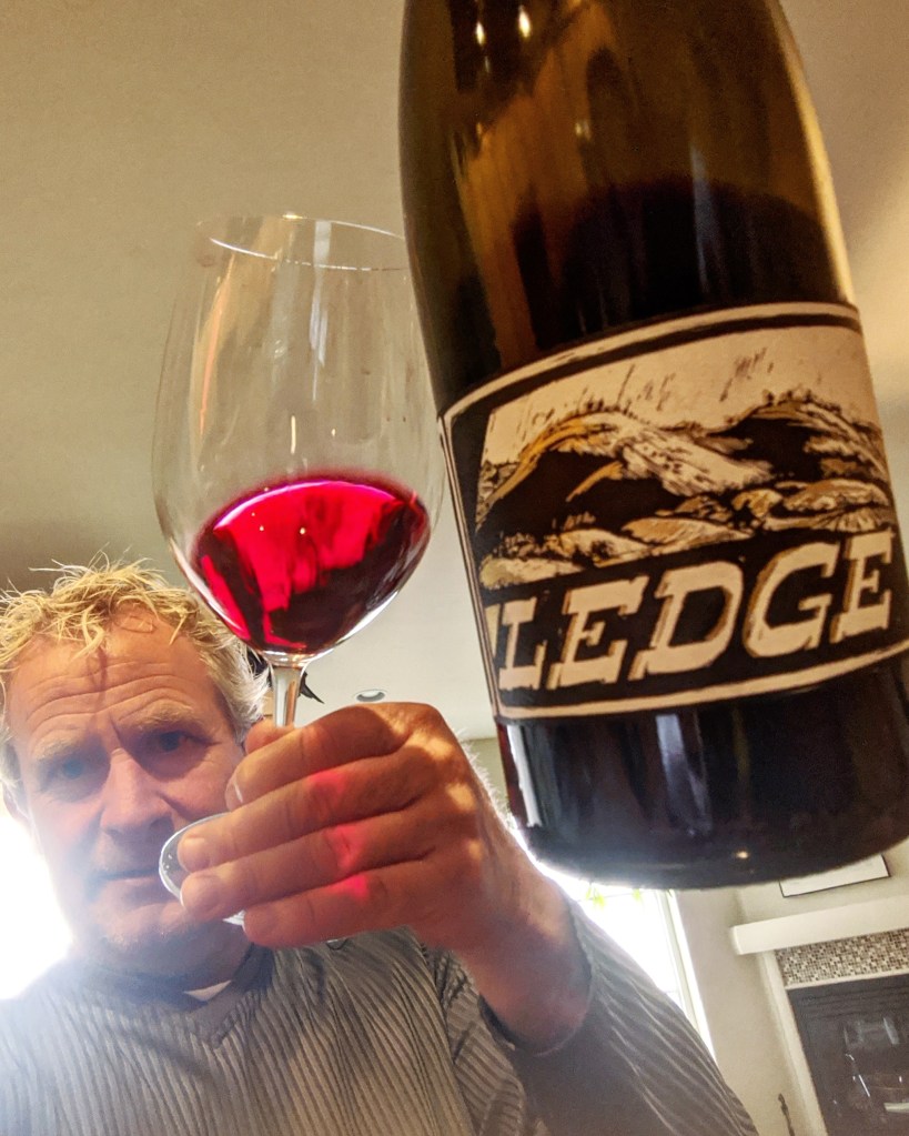 No idea what this is–saw it was *red blend* but purposely didn’t study the ingredients. Dark, nearly impenetrable purple ruby with a huge fruity forward nose crazily spiced and with nice creamy oak. The signature THUD of Ledge fruit constipatingly dense, concentrated black cherry, but this one with more fun yummy delectability than some of his Syrah offerings. Full and round–no pretension–bubble-gum and milk chocolate and a giggling TikTok of generosity. But don’t lose sight of the dark berry streak. Or the tire-iron. Or the wood-chipper. Don’t worry: It won’t LET you.