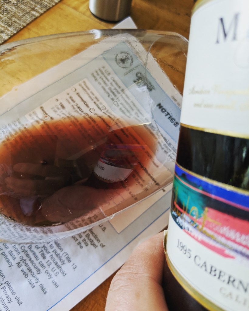 My 5-second guess was “late-80’s Napa/St. Helena zin” my 5-minute guess was “89 Mondavi Unfiltered cab” but at 10-minutes altered it to my final: “79 Mondavi Unfiltered”. Hell, I was only 400 miles and 2 decades off. We ran into this situation last week with a 2007 Paso cab everyone agreed tasted at LEAST 10 years older than it was. Something in the water up there.