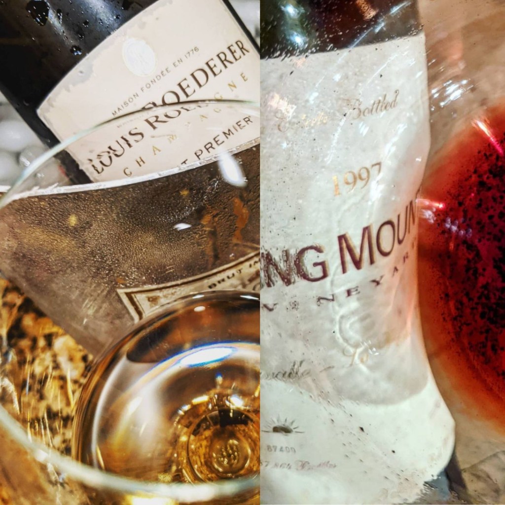 The 97 Spring Mountain was understandably glorious. Dark ruddy with sediment under control, it blasted bottle-funk for about 5 minutes straight-on before all the lovely floral and tertiary notes started playing. I think it is a bit past-prime, but probably in a position where it could go another 15 without changing much. Considerable zing in the nose: alcohol and mint and euc in a cigar box of tired berry mash. A bit of burnt rubber late-breathing sealed my happiness at finally opening my last one. Half the bottle decanted to see if any sort of *air explosion* miracles would occur… Short answer: No; but it ALSO did not fall apart in the decanter nor improve beyond the fresh bottle-pours. I’m a firm believer of bottles like this staying tight in the bottle over the evening against the popular theory of grand decanting and some sort of heavenly Genie emerging many hours later–or even the next day. Chunky and vivid in the mouth, fruit again showing noticeable fade as all the leather and lace take upper hand on the watery acid and charcoal tannin. Wouldn’t trade a wine like this for anything. Absolutely fabulous.