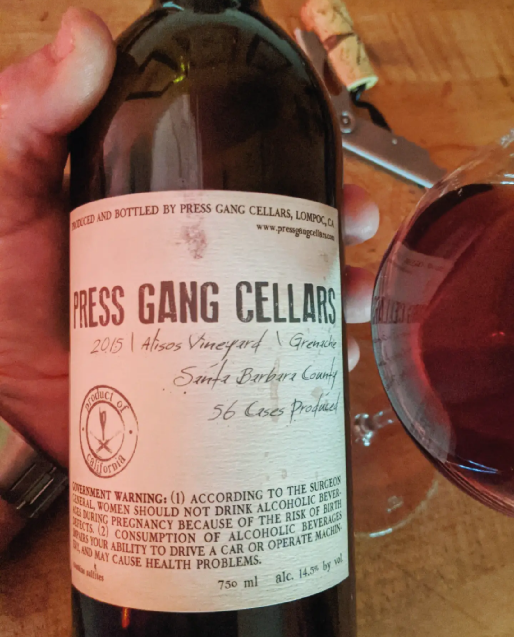 2015 PRESS GANG CELLARS Grenache Alisos Vyd. Alisos Canyon AVA Santa Barbara Co. 14.5