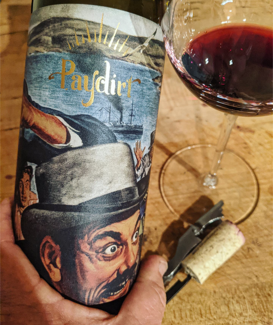 Such fun wines. Paydirt originally started as a Zinfandel-only project in Paso Robles, eventually moving to Napa and adding a smattering of other varieties from all over–hence the “California” labeling. I really like Zin stiffened up with a few other things–not just PS–and here it turns what could be a characteristically flabby wine into something with some backbone. Dark, clear ruby right out to the rim; warm, California muddiness dances around toasty briar and sharp berry. Fruit runs deep blackberry to ripe plum, not a bit supermarket-fruit-FWD or red-blend-slutty, maintaining solemn appearances and solid red-wine stamina with a little wild-west playfulness.