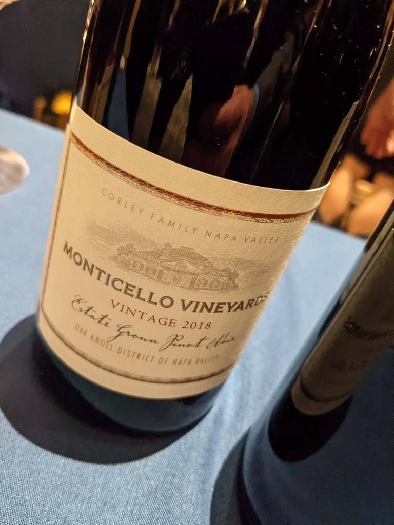 2018 Monticello estate just a gorgeous wine for the price point 40 bucks and particularly well done just a solid solid wine you can’t argue with yourself unbelievable 87 was a little oxidized 2009 was nutty and polished. Corley block 11 clean and nicely done nothing hanging out at the edges tight and acidic well done beautiful thin fruit.