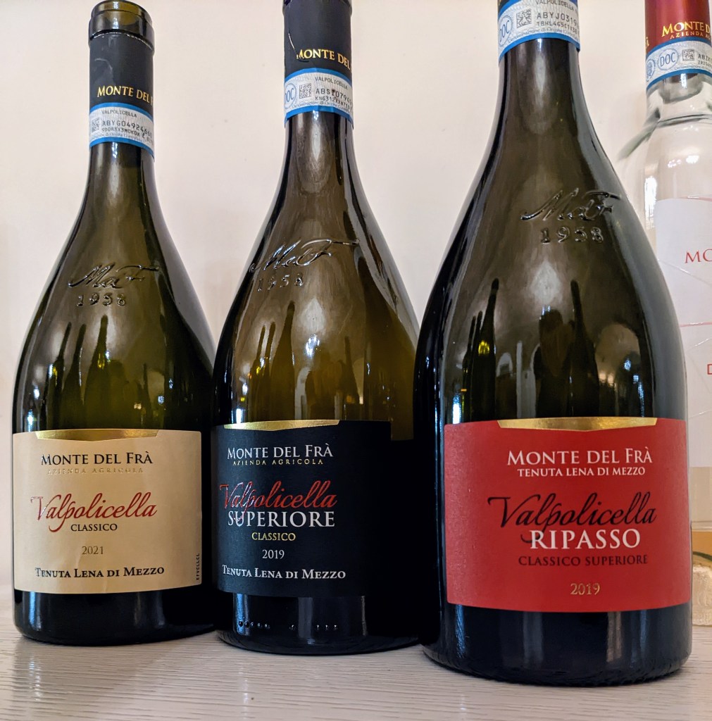 2019 MONTE DEL FRA Valpolicella Superiore Classico Corv/Rond 80/20 100% pergola 12mos 800gal oak Thick ruby running garnet as it thins near edge. Nose sharp but slightly oxidized going towards raisin precisely as cherry fades into maraschino in a spicy deep pit of fruit. In the mouth, young and sharp against gritty dark alley notes where beautiful blackberry rubs against prickly rasp. Mouthfilling and confident, proud and defiant: a 30-year wine. 13.5