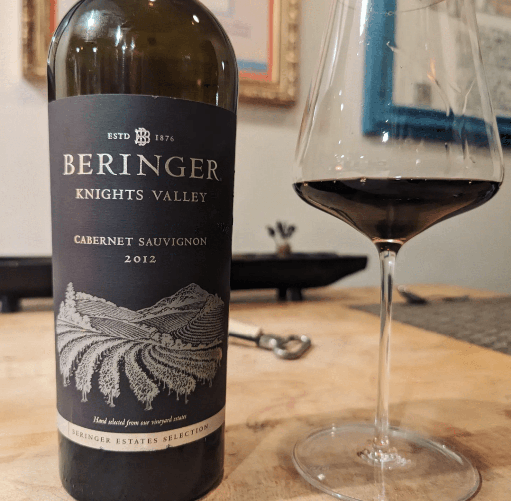 2012 BERINGER ‘Knight’s Valley’ (yes, Knight’s Valley is a trademark on this label, so I am putting it before the variety rather than after) Cabernet Sauvignon (Knight’s Valley)??? Sonoma (NOWHERE ON THE ENTIRE LABEL does the word “Sonoma” appear) 14.3