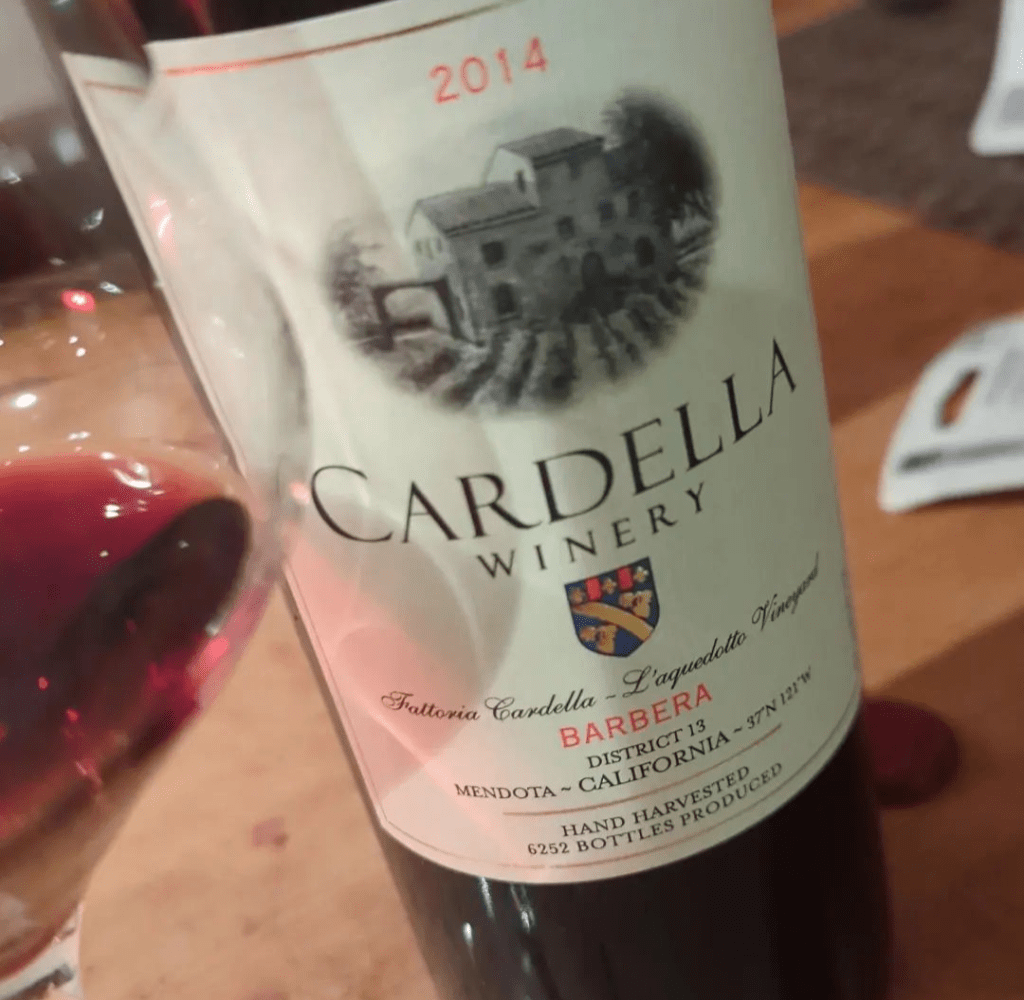 2014 CARDELLA WINERY Barbera L’aquedotto Vyd Mendota San Joaquin Valley California 14.6